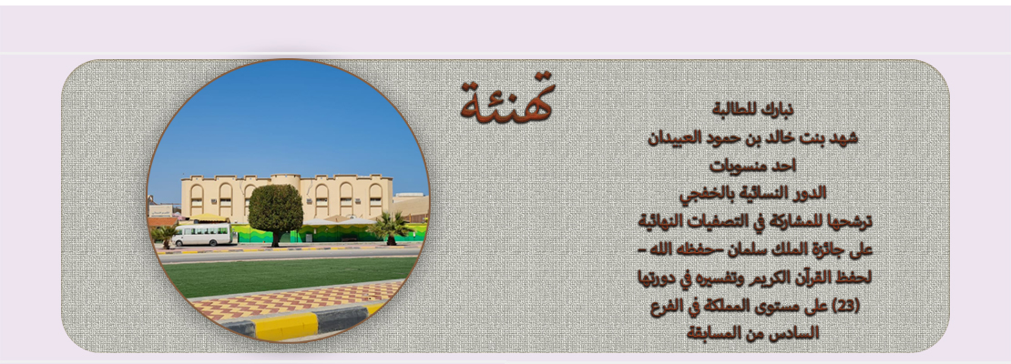 بحمد الله تم ترشيح الطالبة /شهد بنت خالد بن حمود العبيدان احد منسوبات #الدور_النسائية_بالخفجي