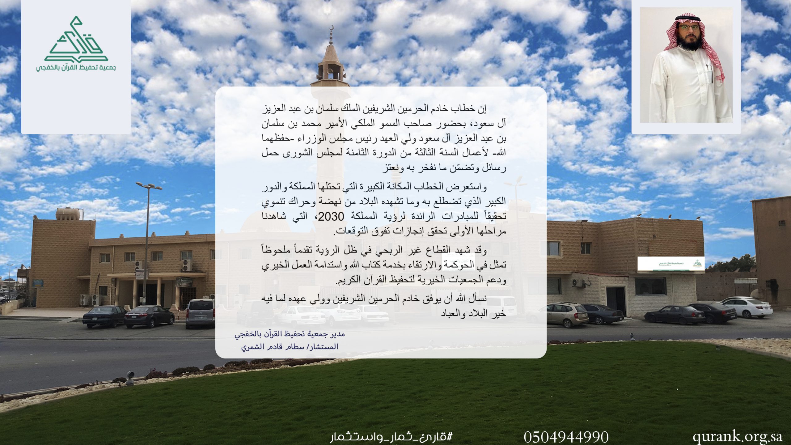 إن خطاب خادم الحرمين الشريفين الملك سلمان بن عبد العزيز آل سعود، بحضور صاحب السمو الملكي الأمير محمد بن سلمان بن عبد العزيز آل سعود ولي العهد رئيس مجلس الوزراء -حفظهما الله- لأعمال السنة الثالثة من الدورة الثامنة لمجلس الشورى حمل رسائل وتضمّن ما نفخر به ونعتز