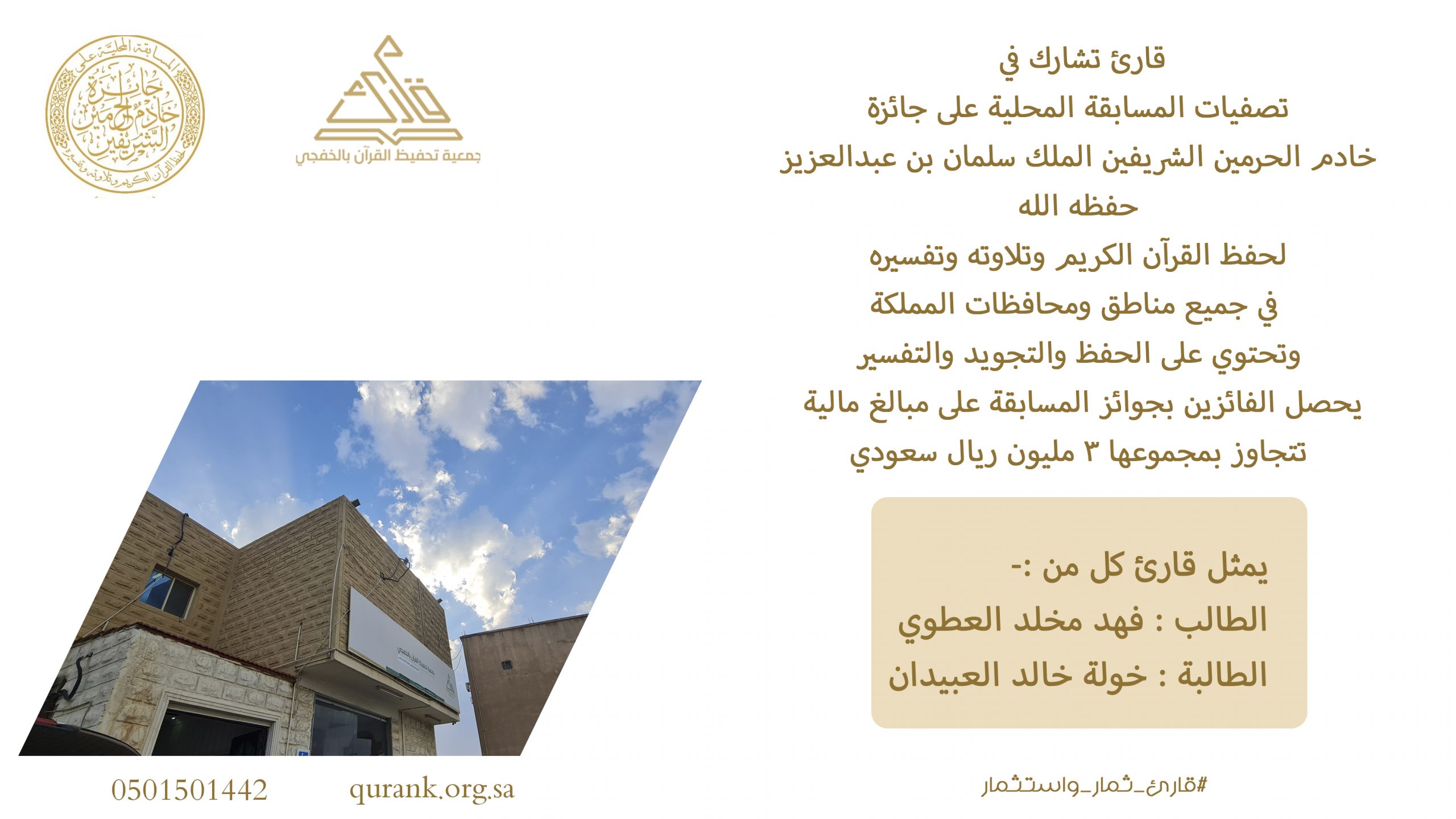 وتتمنى إدارة الجمعية كل التوفيق لهم ولكل المشاركين سائلين الله أن يجعل القرآن رفعة لمنازلهم في جنات النعيم .