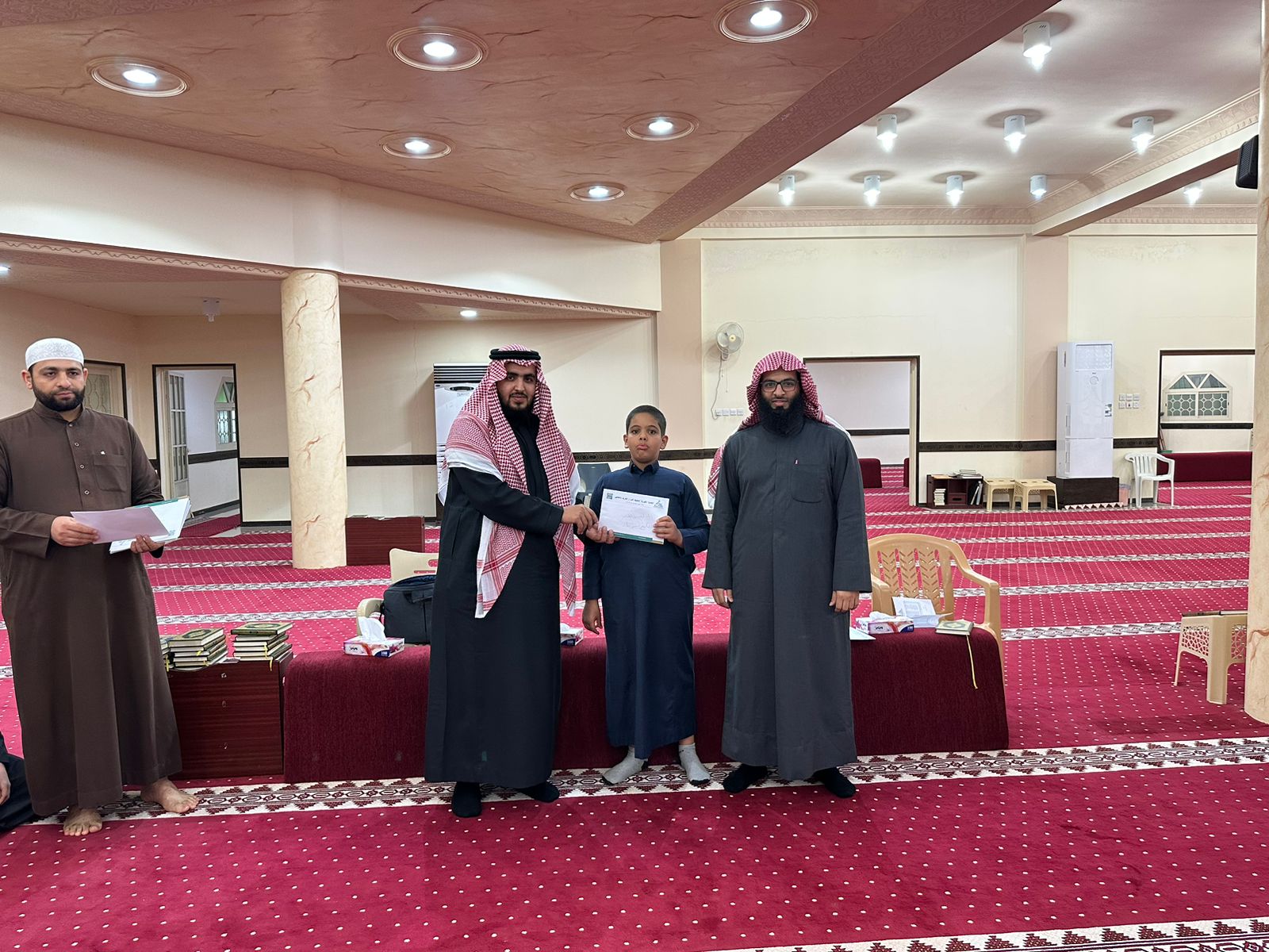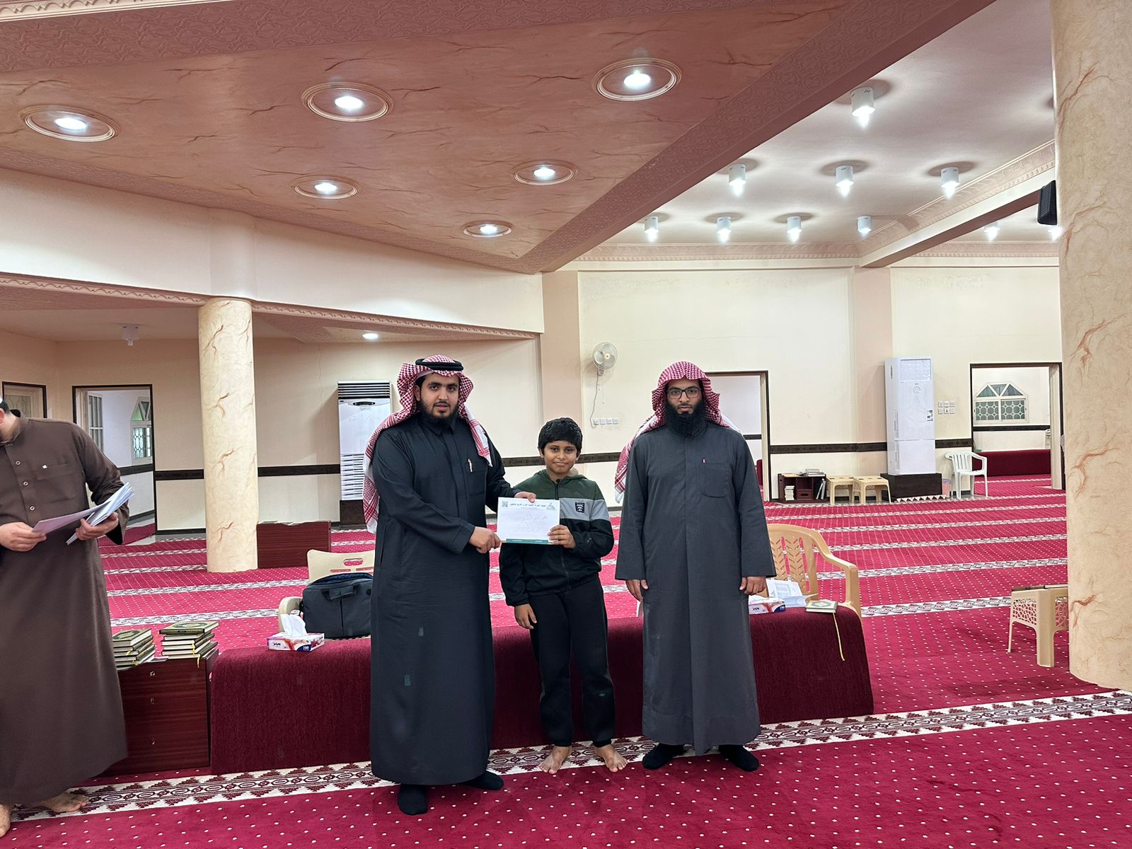 وتم تكريم حفظة القرآن الكريم من قبل سعادة محفظ الخفجي أ/ محمد سلطان الهزاع بمبالغ تصل إلى (5000) ريال وهي الجائزة المعتمدة لكل خاتم وذلك أثناء الحفل السنوي وعددهم 12 طالبا ( تقل المكافأة بحسب نسبة النجاح، كما تم تكريم الطلاب حفظة الأجزاء بمبالغ ( 150) ريال لكل جزء محفوظ جديد وعددهم ( 273) طالب، علما أن اللائحة تنص على صرف المكافآت المالية لشرائح طلاب المراحل الدراسية ويكتفى بإصدار شهادات حفظ فقط للكبار ،سائلين الله التوفيق والسداد.