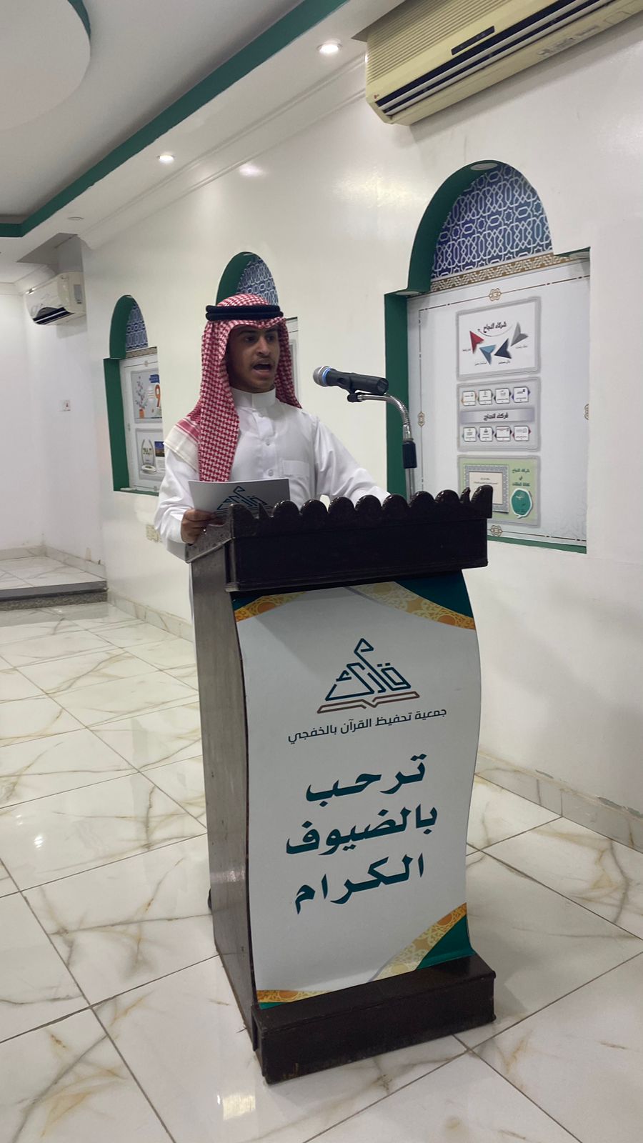 بدأ حفل التكريم في تمام الساعة التاسعة والنصف مساءً بتلاوة قرآنية للفائز بالمركز الأول من منسوبي معهد الطاقة الطالب/ أنس الصالح، وتلاها كلمة الجمعية ألقاها سعادة مدير الجمعية أ/ سطام بن قادم الشمري والتي رحب فيها بالحضور وشكر شريك النجاح مستشفى الخفجي الأهلي على دعمه المتواصل لأنشطة الجمعية، وحث الحاضرين على الاهتمام بالأبناء والبنات واستثمار أوقاتهم الفاضلة في حفظ كتاب الله تعالى وتدبر آياته، وأن برامج الجمعية موجهة لجميع الفئات العمرية حرصًا واهتمامًا بأولادنا وبناتنا.