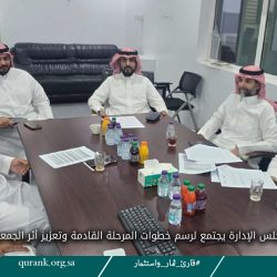 كما استعرض المجلس أبرز توجهاته للمرحلة القادمة، والتي تهدف إلى تعزيز البرامج التعليمية وتحقيق الاستدامة المالية، وأدى مجموعة من طلاب روضة ومدارس القارئ الصغير النشيد الوطني وبعض الأنشطة التي تعكس المستوى التعليمي الرفيع و قيمهم الدينية والوطنية ومدى اعتزازهم وانتمائهم لهذا الوطن المبارك، وقد ثمّن سعادة المحافظ جهود الجمعية في خدمة كتاب الله، مشيدًا بدورها التربوي والمجتمعي، ومؤكدًا دعمه المستمر لمبادراتها التنموية والتعليمية، سائلين الله التوفيق والسداد